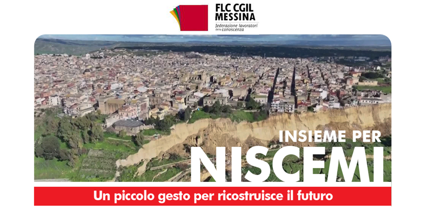 Niscemi: delegazione della Flc Cgil Messina e della Cgil regionale domani a Niscemi per consegnare materiali didattici e giocattoli, raccolti tra le scuole della provincia, agli alunni della scuola evacuata dopo la frana